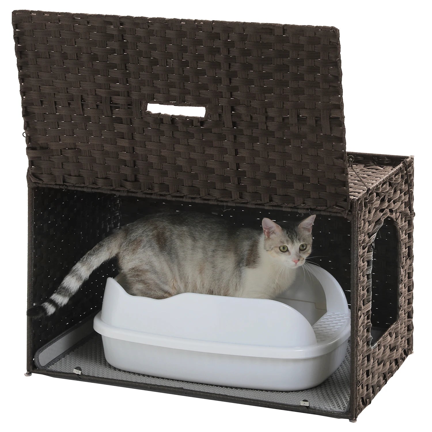 Handwoven Rattan Craftsmanship: Each cat litter box enclosure is meticulously handwoven from PVC rattan that is waterproof, washable and sturdy, offering a unique and stylish addition to your home decor. Includes a removable washable litter mat, the natural texture not only enhances aesthetics but also provides a comfortable environment for your feline friend.