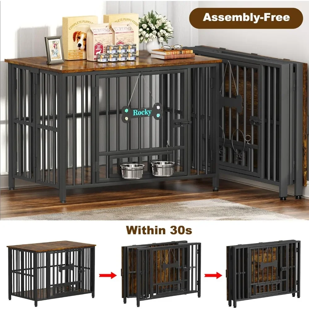 Foldable Dog Crate Furniture - No-Assembly Decorative Kennel for Large Dogs, Wooden Indoor Pet Cage